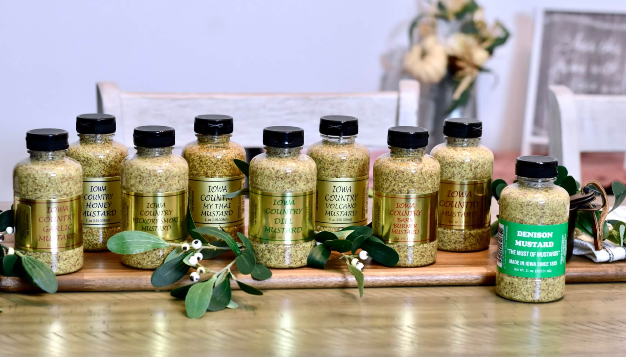 According to owner and third-generation mustard maker, Jessica Slater-Hayes, Denison Mustard Co. was originally founded in 1885. Her step-grandfather, Garth Fuller, purchased the business in 1957. Denison Mustard Co. originally only made the stone-ground mustard recipe until Jessica’s mom developed new flavors in 1997. The first was Iowa Country Honey Mustard.