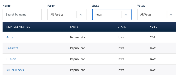 Republicans, including Iowa’s three Republican representatives, largely opposed the community violence grants and grants for mental health professionals. Reps. Ashley Hinson, Mariannette Miller-Meeks, and Randy Feenstra all voted “no” on those two bills while Democratic Rep. Cindy Axne was Iowa’s only “yes” vote on the measure.