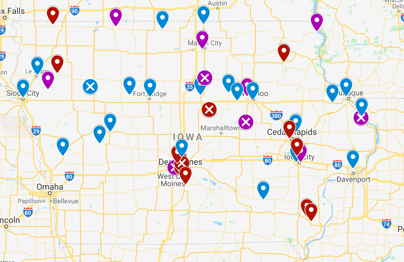 Danville special education teacher Laura Blanchard in late June began to plot on Google Maps which of Iowa’s high school teams had to alter their seasons due to exposure or positive cases of coronavirus, finding that around 7.3% of teams had had some sort of COVID disruption.