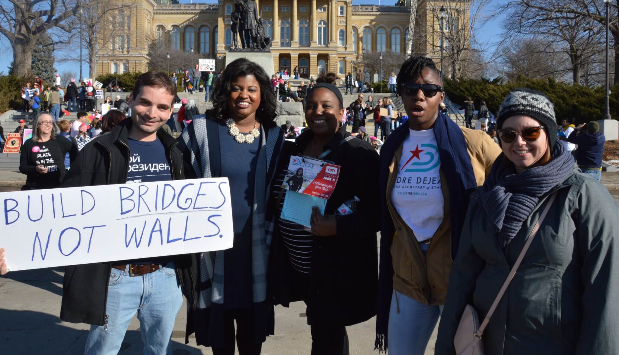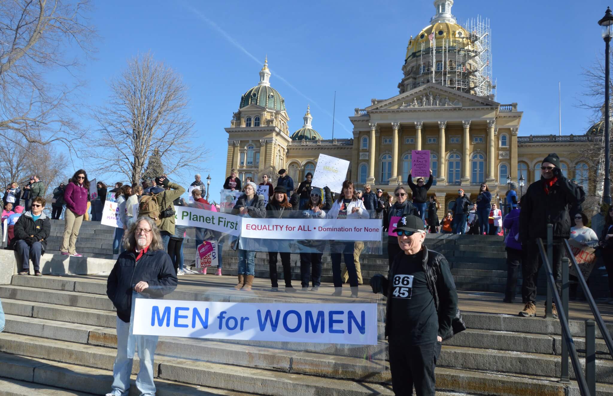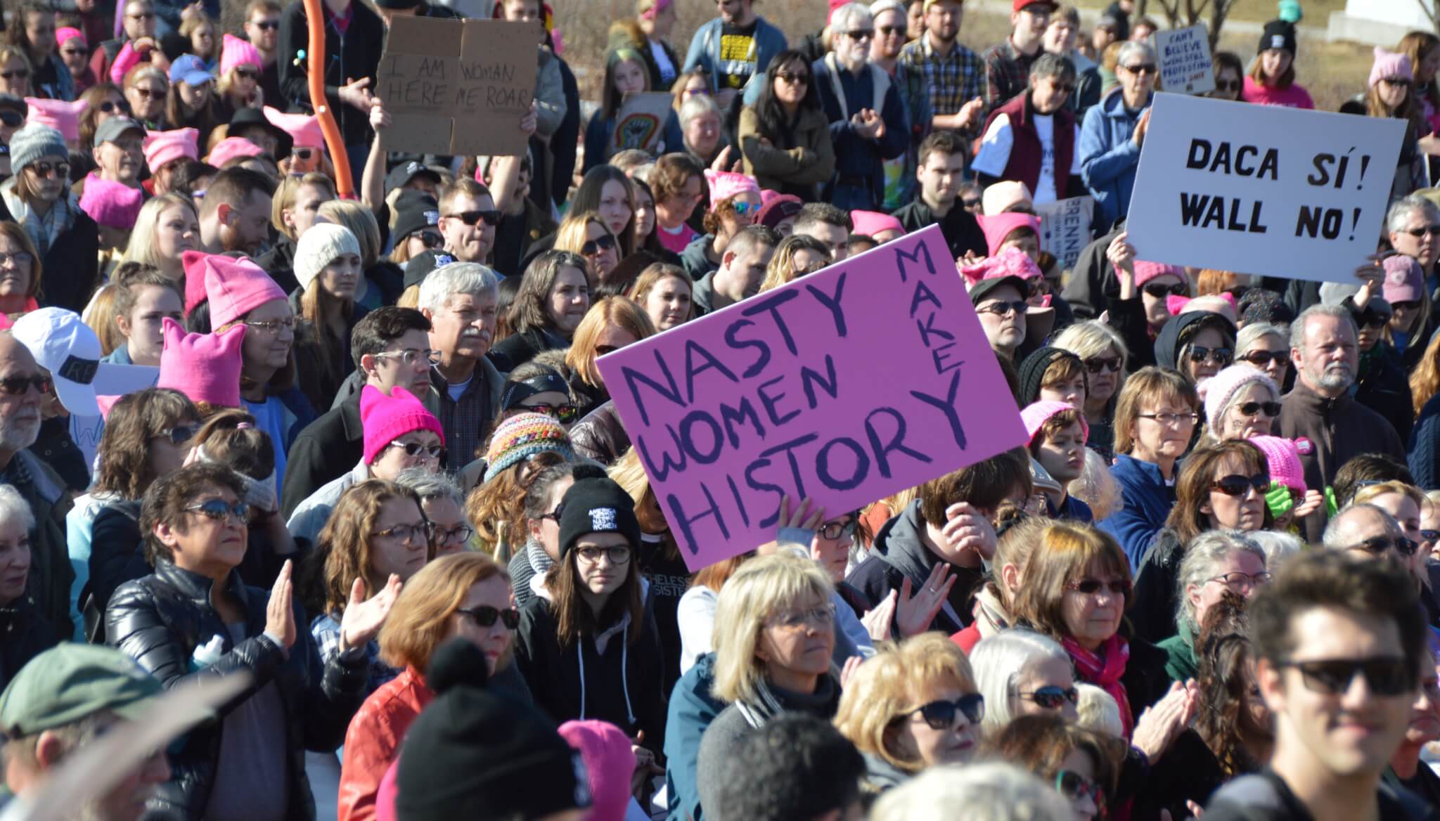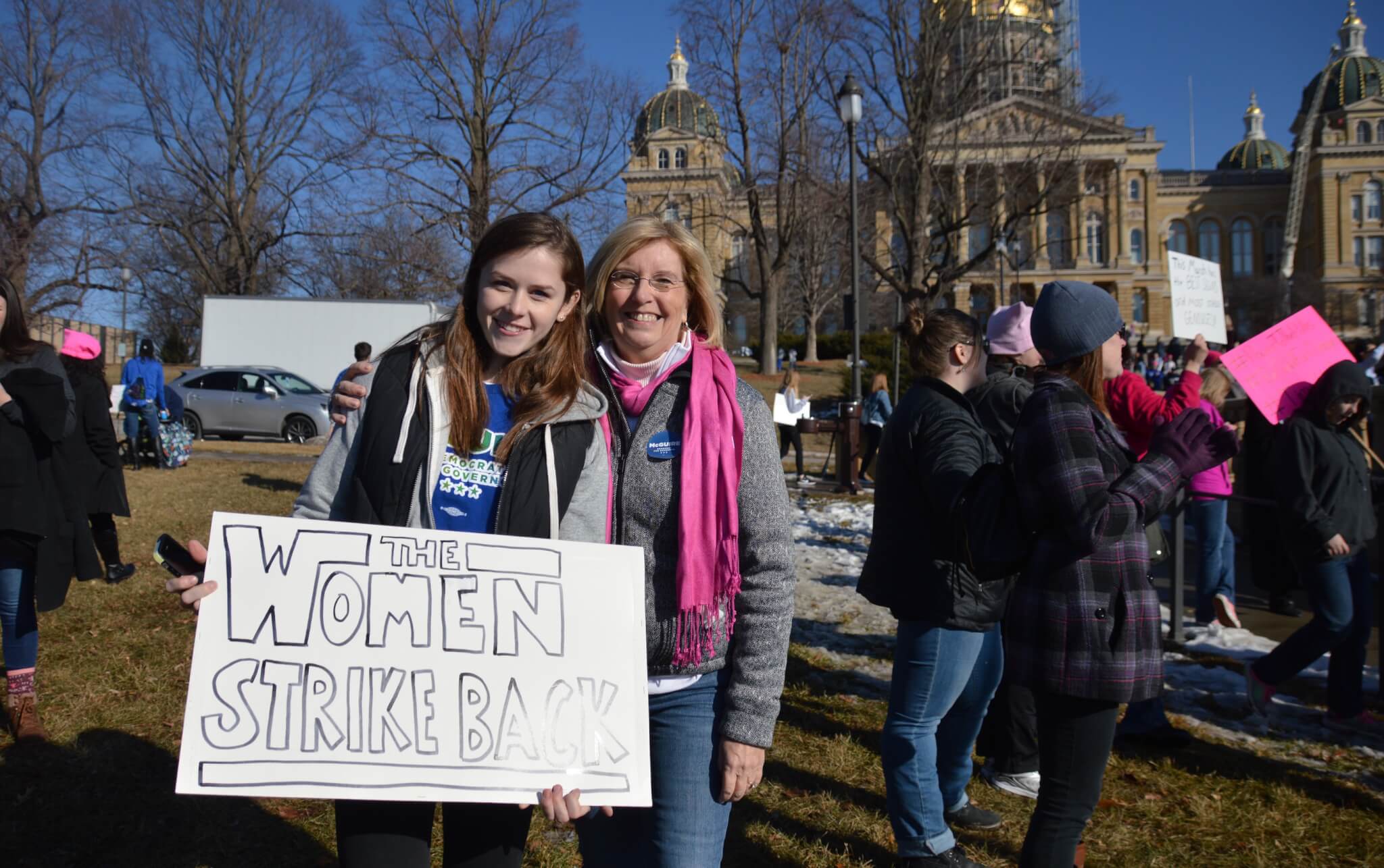 On a bright and sunny Saturday afternoon, one year to the day of Donald Trump’s inauguration, close to 10,000 people gathered outside the Iowa State Capitol building for this year’s Women’s March. Thousands of activists, voters and concerned citizens came out sporting pink clothing and hats, homemade signs and a passion for fighting back in 2018.