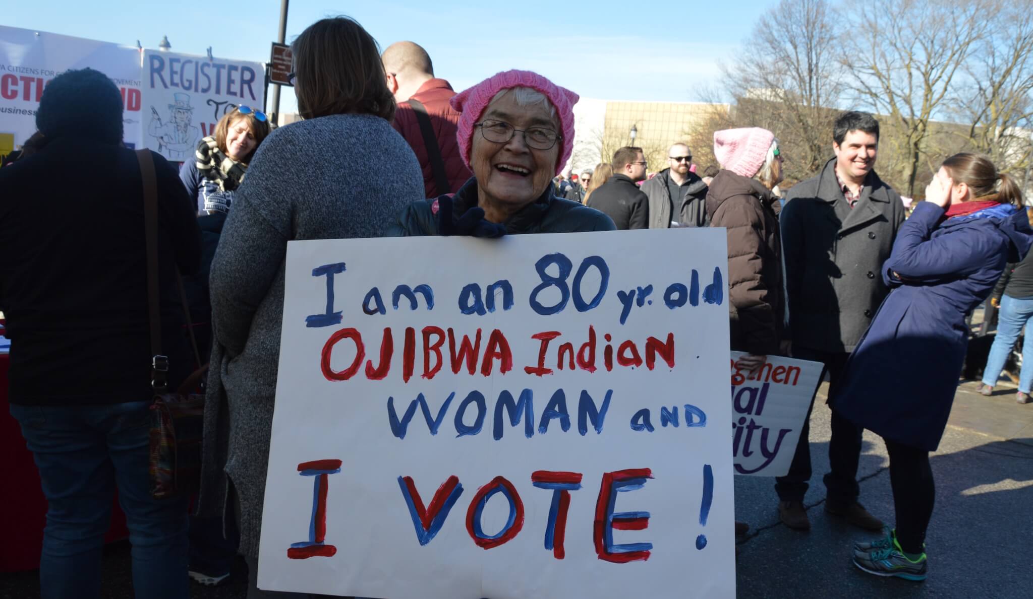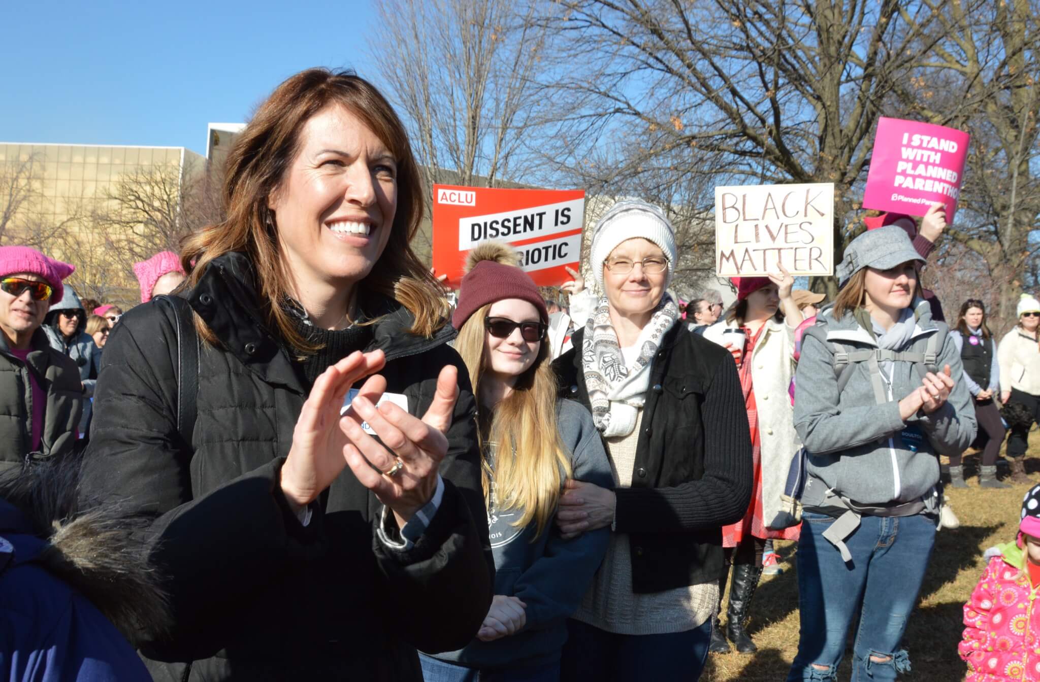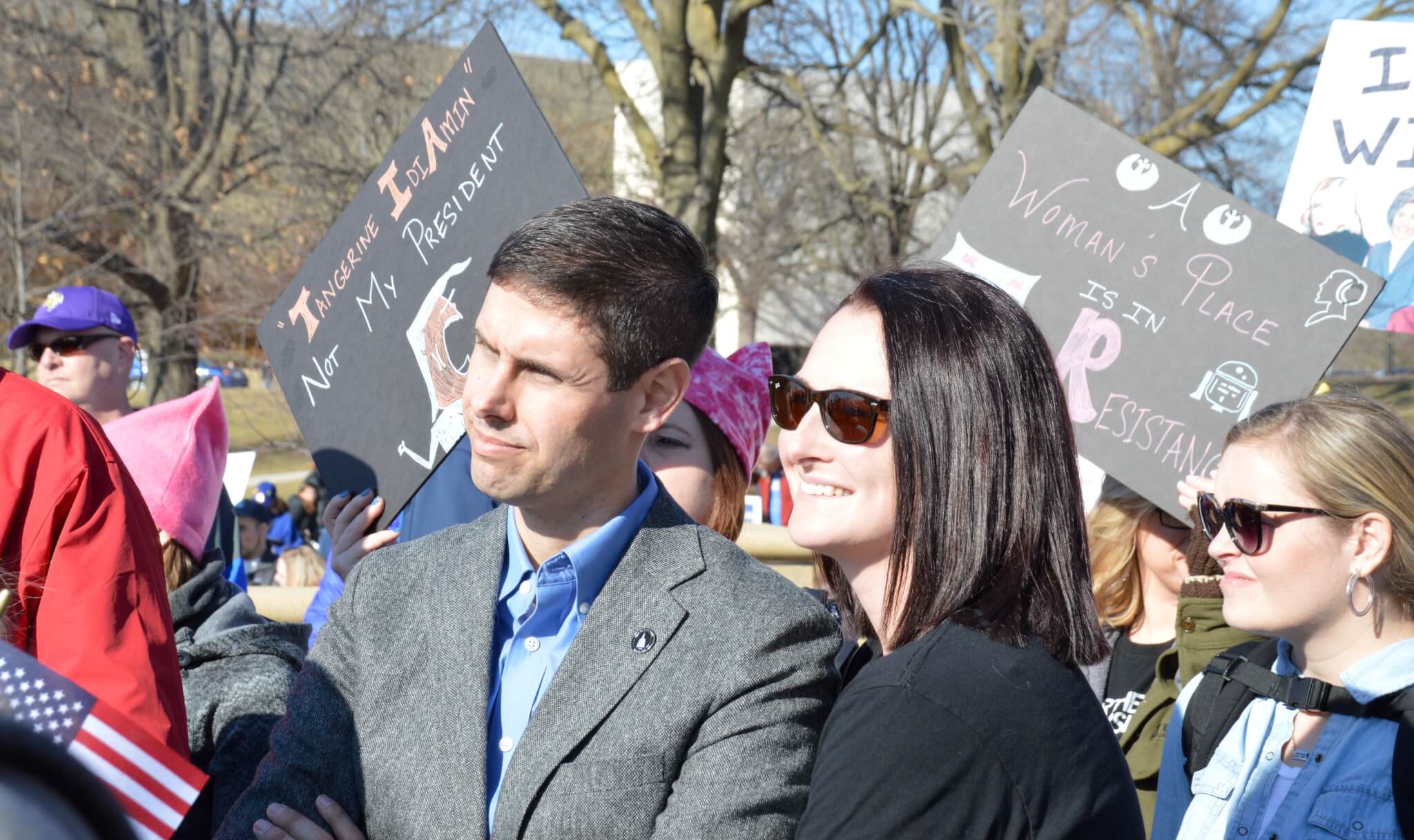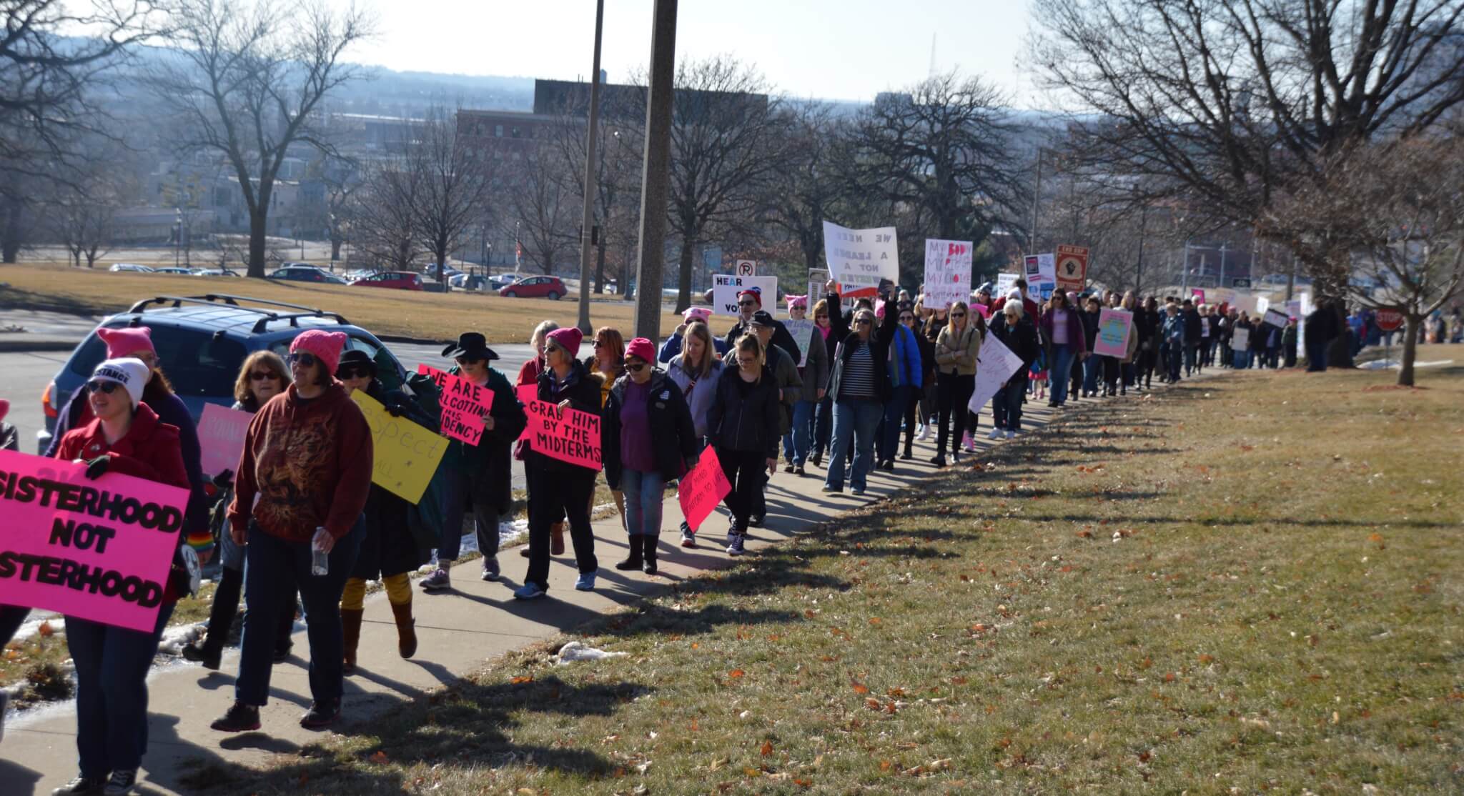 On a bright and sunny Saturday afternoon, one year to the day of Donald Trump’s inauguration, close to 10,000 people gathered outside the Iowa State Capitol building for this year’s Women’s March. Thousands of activists, voters and concerned citizens came out sporting pink clothing and hats, homemade signs and a passion for fighting back in 2018.