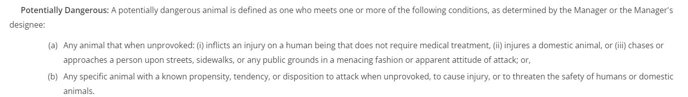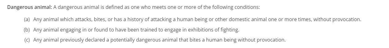 “Pit bull terrier” means any dog of that breed known variously as American Pit Bull Terrier, American Staffordshire Terrier, or Pit Bull Terrier, or any dog of mixed breed which contains a strain of such breed known variously as American Pit Bull Terrier, American Staffordshire Terrier or Pit Bull Terrier, and which is identifiable as such by a qualified veterinarian duly licensed in the State. […] KEEPING OF DANGEROUS ANIMALS PROHIBITED. No person shall keep, shelter, or harbor any dangerous animal as a pet or act as a temporary custodian for such animal, or keep, shelter, or harbor such animal for any other purpose or in any other capacity within the City.