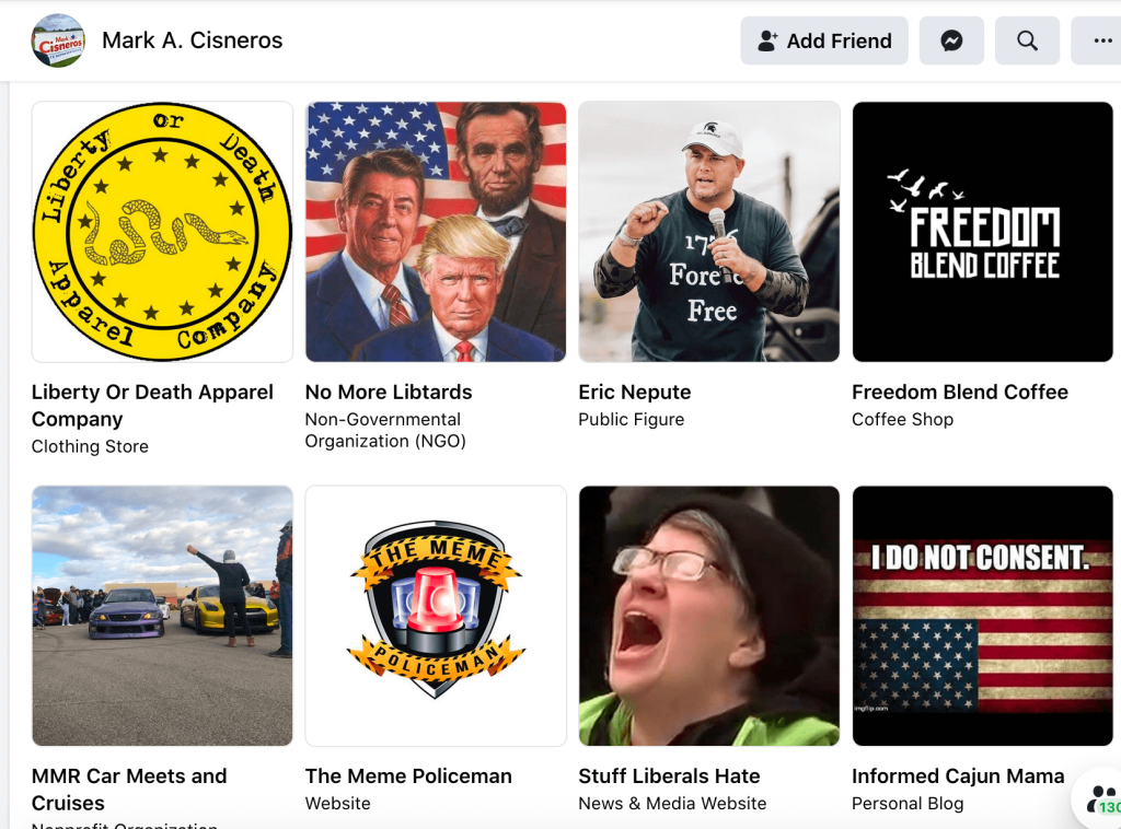 From my interview on Que Pasa Iowa? and everything I have learned about Cisneros indicates he is far more extreme than Rep. Carlson. His Facebook page depicts his beliefs and what he supports. There is little original or personal content. His likes and memes include pro-confederate flag groups, extreme conservatives like Tucker Carlson and Brad Parscale, the American Firearms Coalition, The Closet on the Right, and of course, his devotion to President Trump.