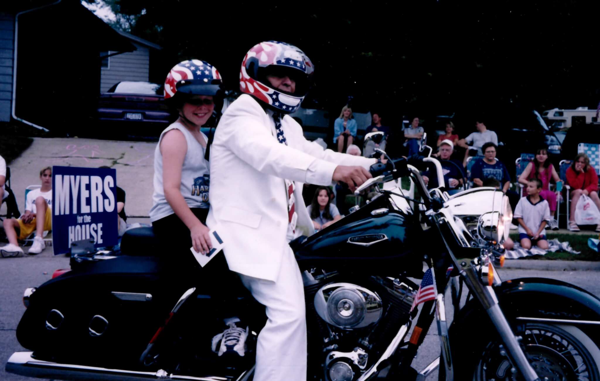 Mixed in with that life was local politics. Dick Myers served at nearly every level of government, including on the Coralville city council, as mayor of the town, as a Johnson County supervisor and eventually in the Iowa House. He served in the Carter Administration and ran for Congress as well. His campaigns stretched from the early 1970s to his five terms in the House from 1993 to 2003. Cathy often helped, who began doing door-to-door canvassing at age 10.