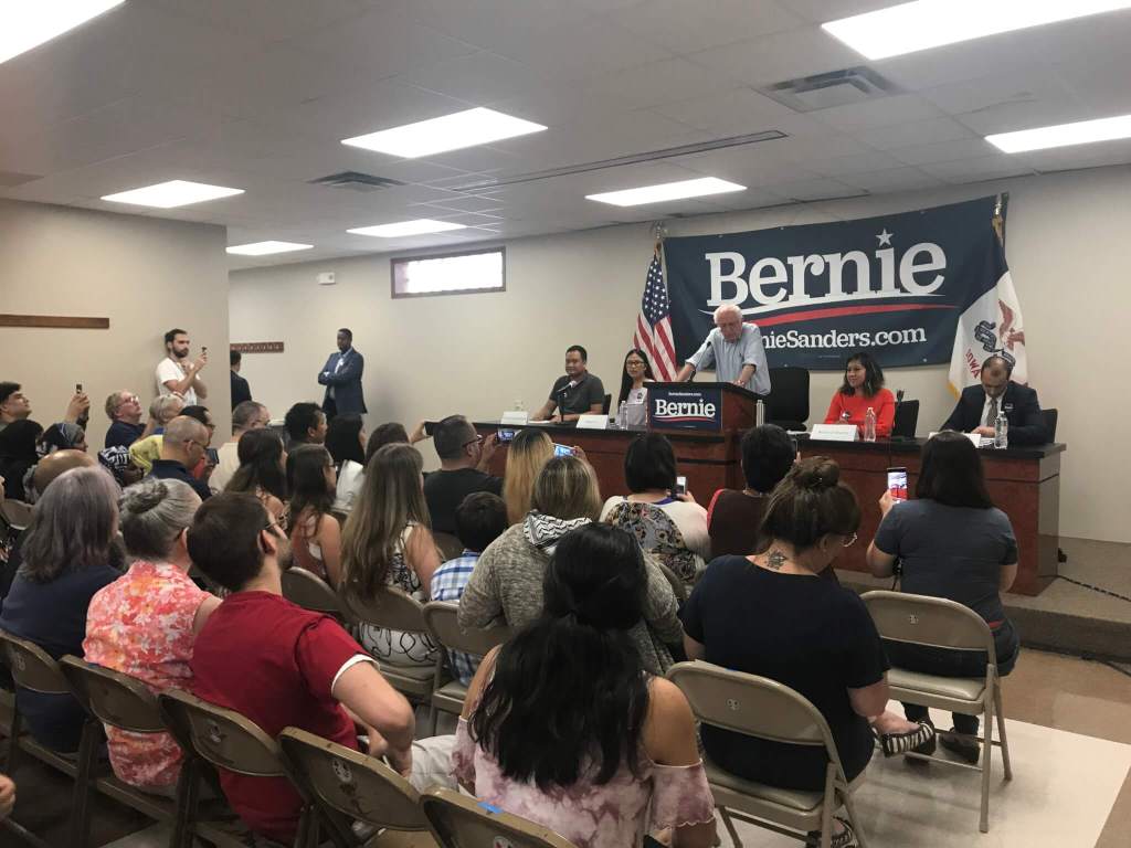 Sanders hosted an immigration roundtable on Wednesday night. Held in Southeast Des Moines, the event drew a large, emotional crowd.