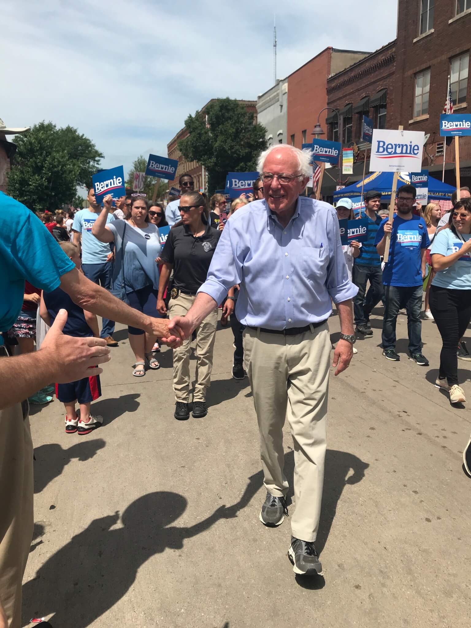 Sanders walked in a parade in West Des Moines on July 3 following the immigration roundtable to kick off what was about 36 hours of parading non-stop. On Thursday, he walked in parades in Slater, Ames, Windsor Heights and Pella.