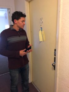 As he heads to Darnall’s house, he tries calling to tell the volunteer he’s on his way. Darnall doesn’t answer. He tries again when he pulls into the low-income apartment complex on Des Moines’ North Side. Still no answer. Darnall always comes out to meet him, so he’s not sure where in the complex she lives. Checking some records on his phone, he heads in and tries the door that’s supposed to be hers’. A gruff-sounding man informs him that it’s not.