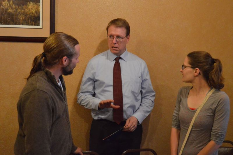 Following the hospital tour, Hogg and Beall head across town to visit a clinic with patients that are actually alive. The staff at a federally funded health clinic that serves low-income residents informs Hogg that they’ve had 3,000 new clients who signed up for healthcare through the Affordable Care Act. One of the few places in Fort Dodge that takes Medicaid patients, they’re now planning an expansion to the building. Hogg reiterates his support for the ACA and commitment to improve it even more.