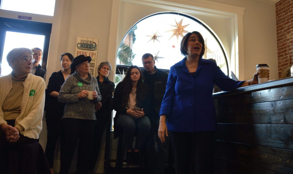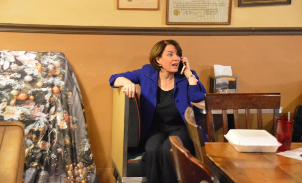 After noting she had flown out from Los Angeles the day before on limited sleep, Klobuchar gave a brief, five-minute stump speech. One man told Klobuchar that Democrats should stop talking about providing so many free things, to which Klobuchar replied that she’s been arguing in her campaign that things like fully-free college wasn’t realistic, but that there needed to be a strong safety net.