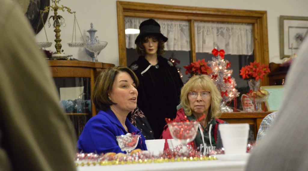 A woman told Klobuchar about how her husband had a stroke and she had to retire to take care of him. Klobuchar asked them whether they could get long-term health insurance (they couldn’t) and the candidate described her elderly father’s health issues and issue with long-term care.