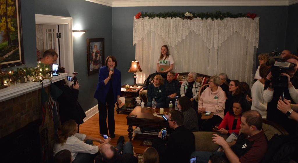 Though it was only the second event of the day, the candidate was already running 35 minutes behind scheduled time. This one played out more like a regular caucus event, with Klobuchar giving a larger part of her personal biography speech and talking about issues like pharmaceutical prices and long-term care. She encouraged attendees to call friends or family members in Minnesota to get a reference for her.