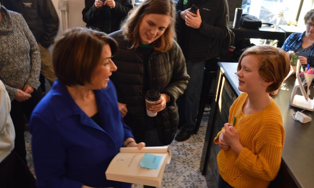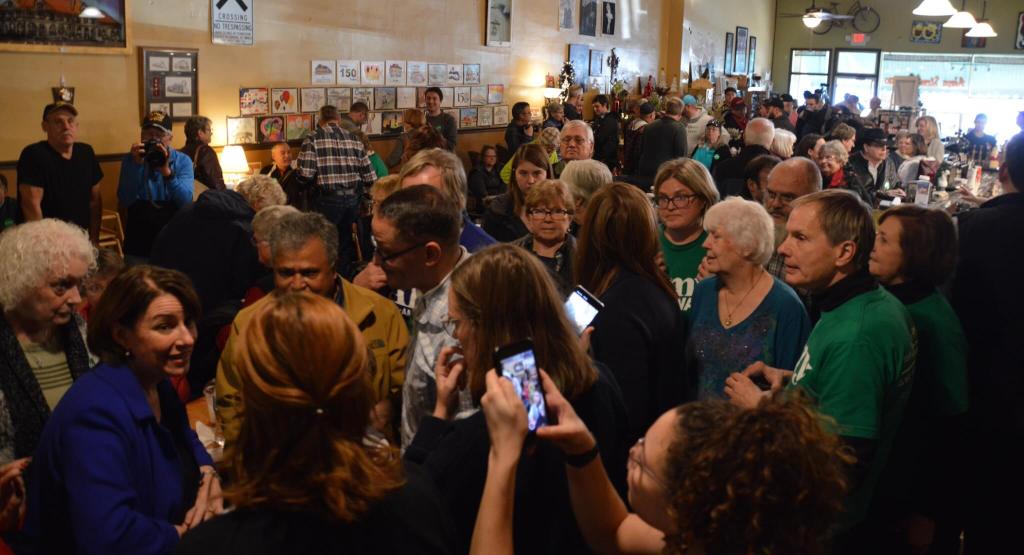 Reception: Klobuchar really started to hit her stride in front of a packed coffee shop in Creston, Iowa. Attendees said it was the largest they’d had in the venue this year, though Buttigieg drew close to 300 across town last month. Joe Biden appeared at the train depot there later in the day, drawing 211. The crowd cheered loudly at many of Klobuchar’s lines, and she picked out certain enthusiastic supporters in the crowd as she went.
