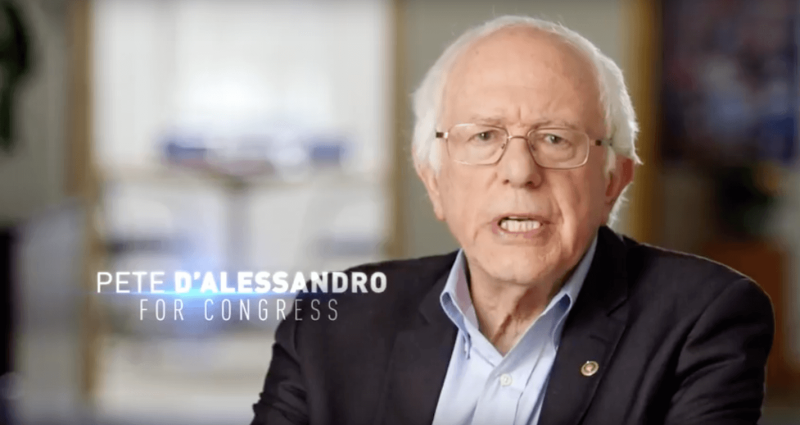 Sanders narrates D’Alessandro’s first TV ad and appears in it at the end, promoting D’Alessandro’s support of equal pay laws, paid family leave and a Medicare for all system.