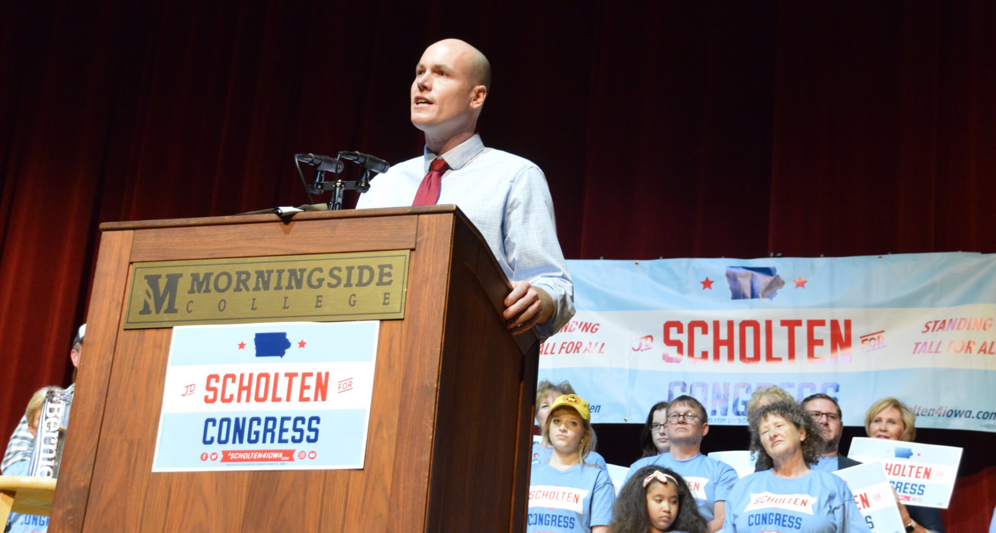Scholten himself has been unafraid to run in deep-red Northwest Iowa while promising to support a wide range of very progressive policies. He’s for a $15/hour minimum wage and Medicare-for-all, and most notably he’s forcefully pushed back against King’s immigration stances, running specifically on a more welcoming and fair immigration system. He even began part of his speech in Spanish, encouraging Hispanic voters to get out to vote.