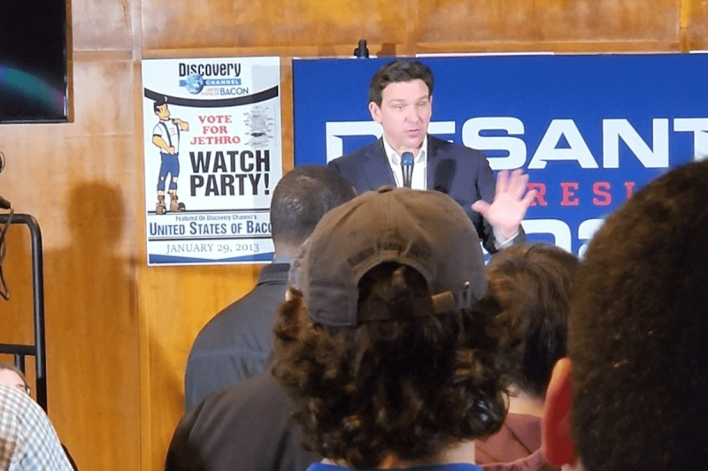 “This is wrong with the college system right there,” DeSantis said, after Rajbhandari was removed. “That’s exhibit A.” He then pivoted back to his stump speech.