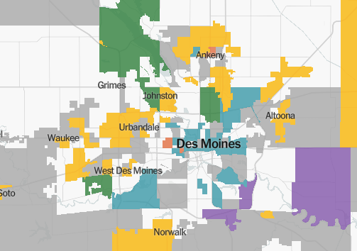 Buttigieg swept many of the suburban precincts, winning much of Ankeny, Johnston, Urbandale, Clive, Waukee and West Des Moines. Warren and Klobuchar often picked up a decent number of delegates here too.