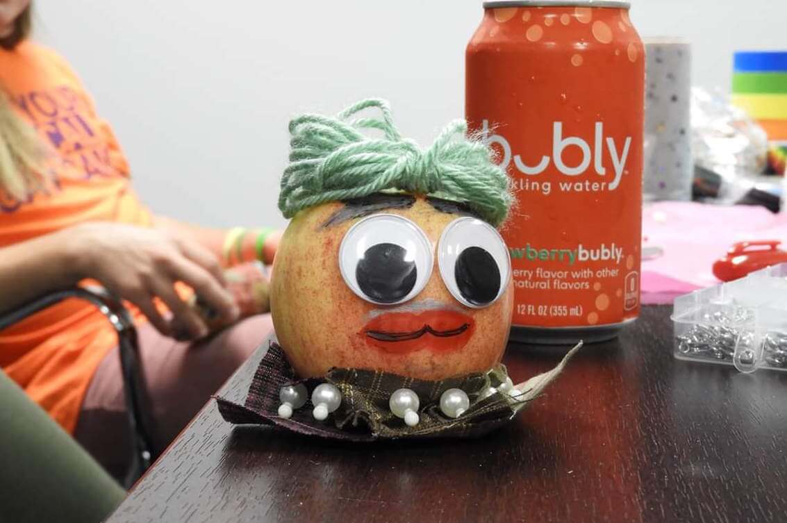 Chasten Buttigieg, Pete Buttigieg’s husband, also had fun at Iowa Safe Schools on Friday afternoon. They had briefly run out of potatoes, though, so he created this “drag apple” instead.