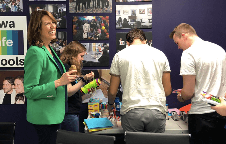 Congresswoman Cindy Axne joined in the Pride Month fun on Thursday afternoon. She joined local students gathered at Iowa Safe Schools’ office to create “drag taters” by drawing a face on a potato and then dressing it up. The Safe Schools organization advocates for LGBTQ youth in Iowa – they recently named Axne “Ally of the Year.”