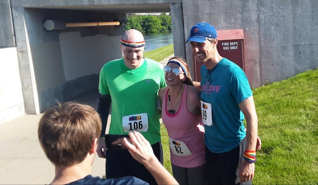 Beto O’Rourke ran the 5K Fun Run at Capital City Pride Fest Saturday morning in about 27 minutes and 10 seconds. He ran with his wife, Amy, and Iowa politician J.D. Scholten.