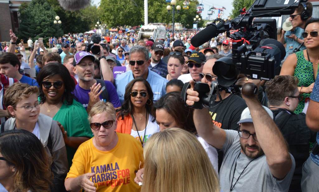 Other than that, though, Harris had the quintessential Iowa State Fair experience, led around by her new endorsers, Sue and Bob Dvorsky.