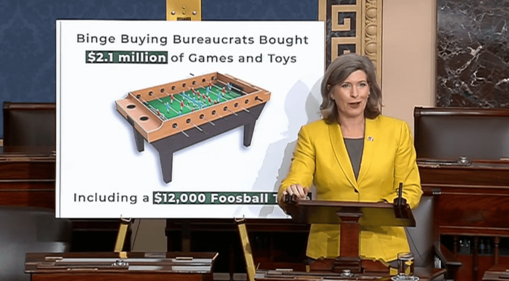 “Of course we all know it is the season in Washington. Government agencies are going on their annual Christmas in September, use-it-or-lose-it shopping spree,” said Ernst, Iowa’s junior Republican senator. “If not spent by midnight on Sept. 30, leftover dollars expire and can no longer be used.”