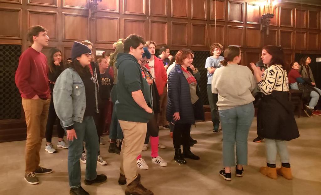 Student representatives or volunteers had an opportunity to pitch their chosen candidate in 15 seconds before caucusing began. Students for Sen. Elizabeth Warren, Mayor Pete Buttigieg and Sen. Cory Booker were the only ones who stepped forward.