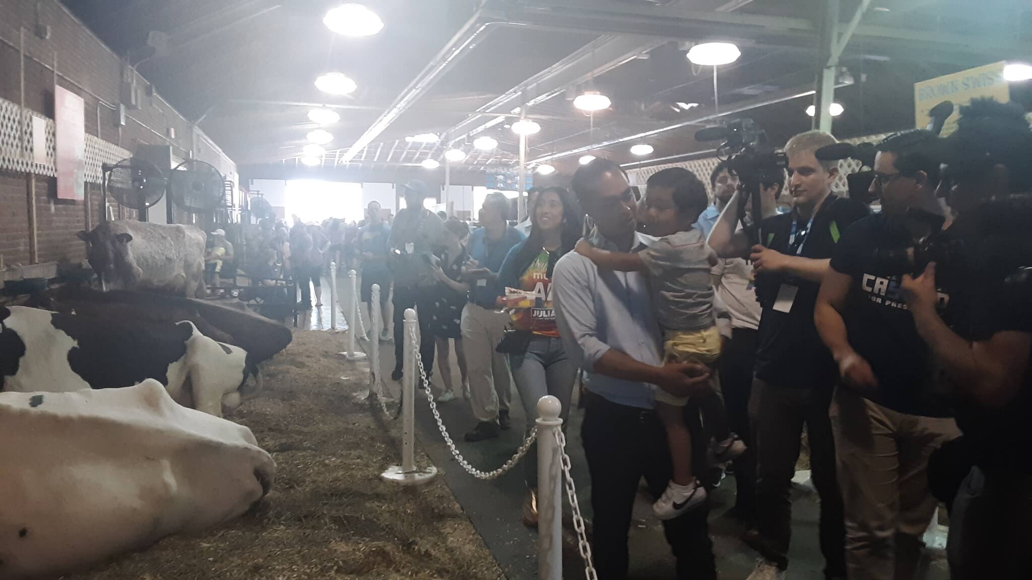 He even stopped in the cattle barn, a quintessential stop at the Iowa State Fair.