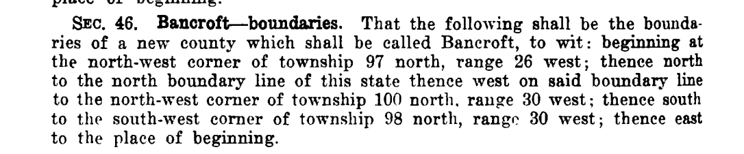 North of it was Bancroft County, Iowa’s fabled 100th county—or was it?