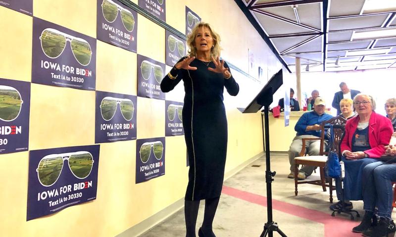 Dr. Biden, a community college professor, closed out the remarks Friday morning in front of 260 people at the University of Dubuque, calling specifically on teachers in the room to volunteer as precinct captains on Feb. 3.