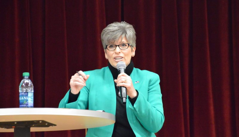 Senator Joni Ernst expressed her frustration at Donald Trump’s latest incendiary comments about not wanting immigration from certain “shithole countries,” but defended the President against accusations of racism today. The exchange came at one of her town hall forums held in Boone at the local high school this afternoon, with a crowd of just under 100 present.