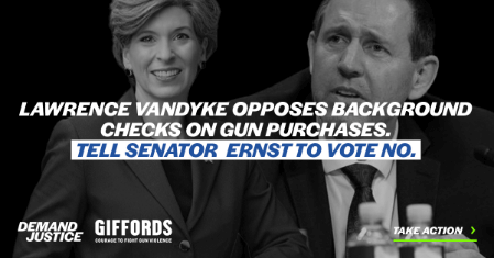 “Approving VanDyke will put lives at risk by putting a proponent of an extreme, unprecedented view of the Second Amendment on the federal bench,” the Giffords organization’s Lloyd said. “If Senator Ernst cares about ensuring that the people’s elected representatives retain the ability to craft solutions to the nation’s ongoing gun violence crisis, she must vote no on VanDyke.”