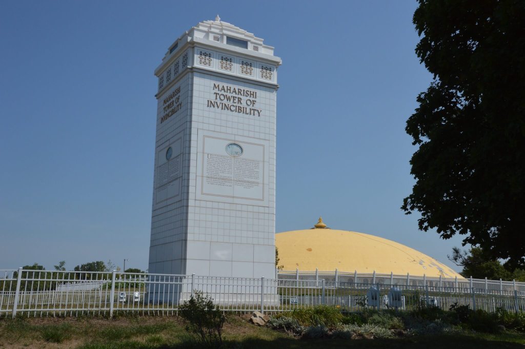 It is not difficult to notice that Fairfield, which has a population of just under 10,000, is a bit different. Driving though town, you’ll see on the horizon a towering statue labeled the “Maharishi Tower Of Invincibility.” It sits next to one of the town’s golden domes, a part of the Maharishi University of Management’s sprawling campus.