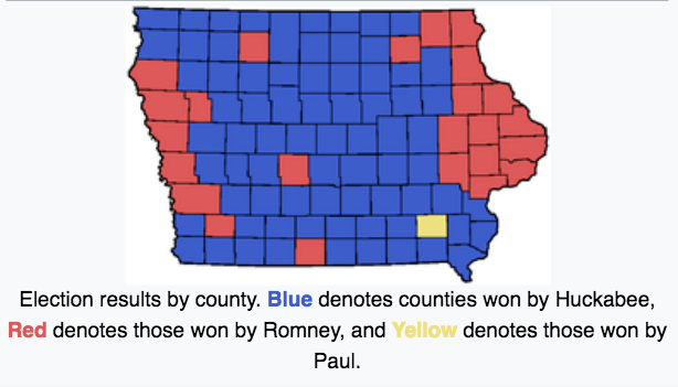 In 2008, Jefferson County was the only county in the entire state that Ron Paul, a libertarian Republican presidential candidate, carried. In 2012, Paul once again won the Jefferson County Republican caucus with 49% of the vote. Rick Santorum won the Iowa Caucus that year, but received support from only 19% of voters there.