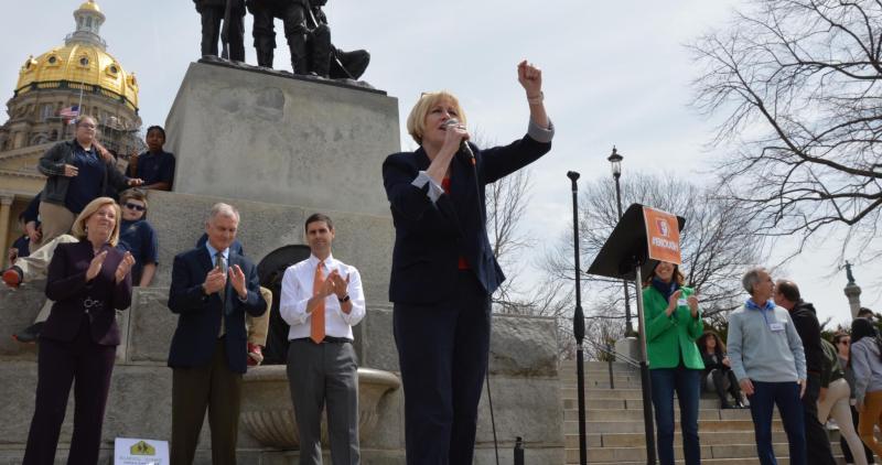Secretary of State candidate Deidre DeJear also rallied her supporters over the noontime hour that day to go vote early.