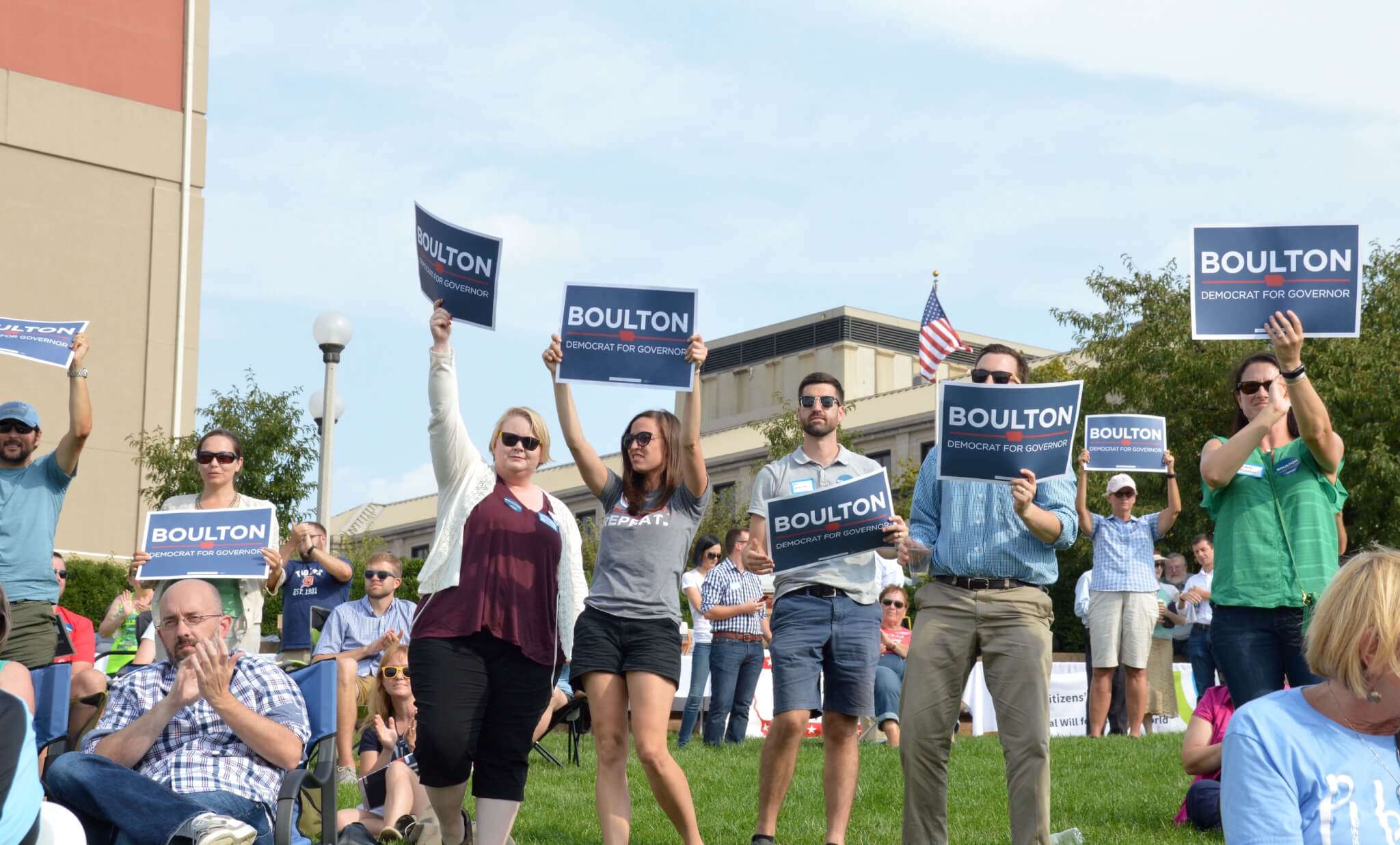 Congressman Dave Loebsack, the seven Democratic gubernatorial contenders and Brent Roske, an independent candidate, addressed the crowd for about five minutes each. Much like the party’s Hall of Fame Dinner in July, Nate Boulton and Fred Hubbell had the largest contingent of supporters on hand.