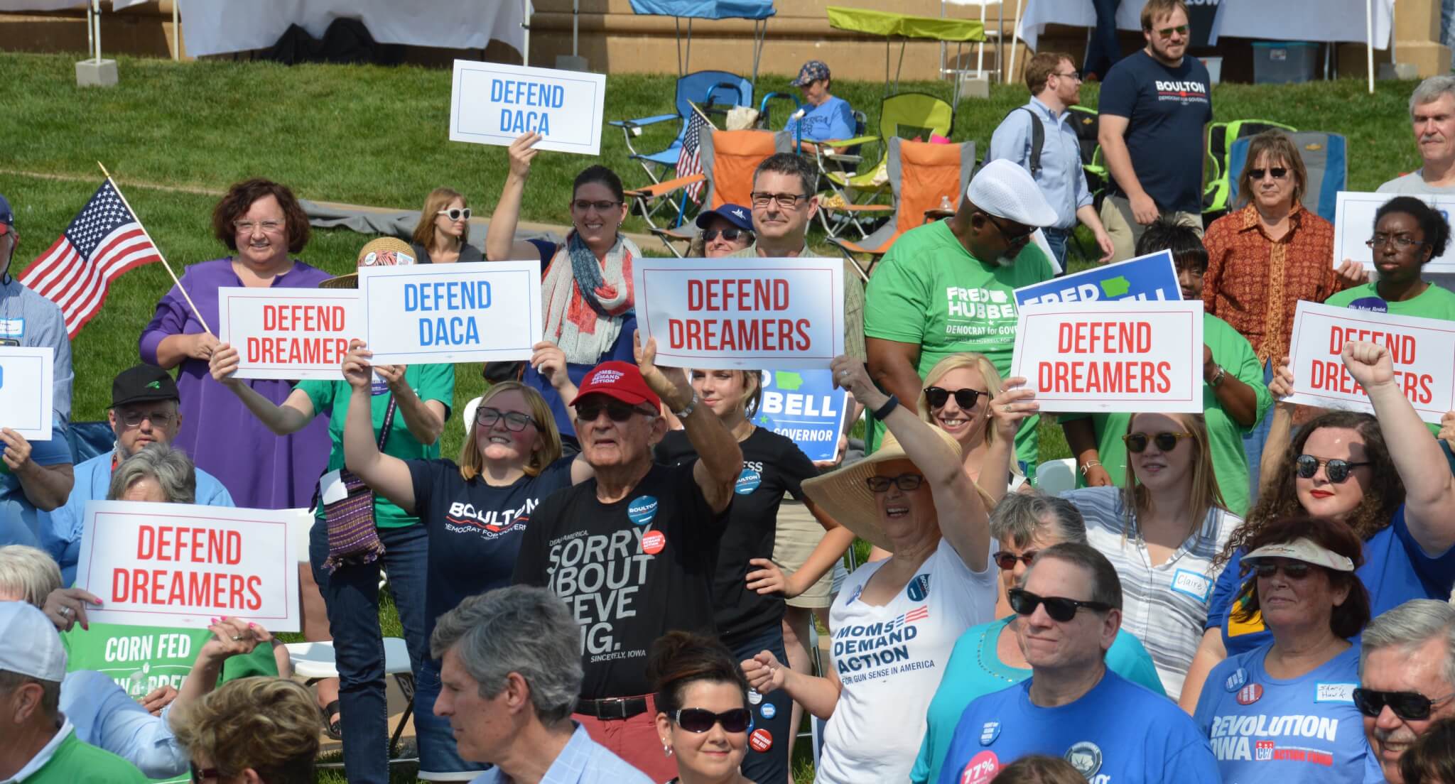 Healthcare, immigration and climate change topics dominated most of the day’s speeches. Progress Iowa passed out “Defend DACA” and “Defend Dreamers” placards to the crowd to get a group picture to show solidarity in the face of President Donald Trump’s recent actions to rescind DACA.