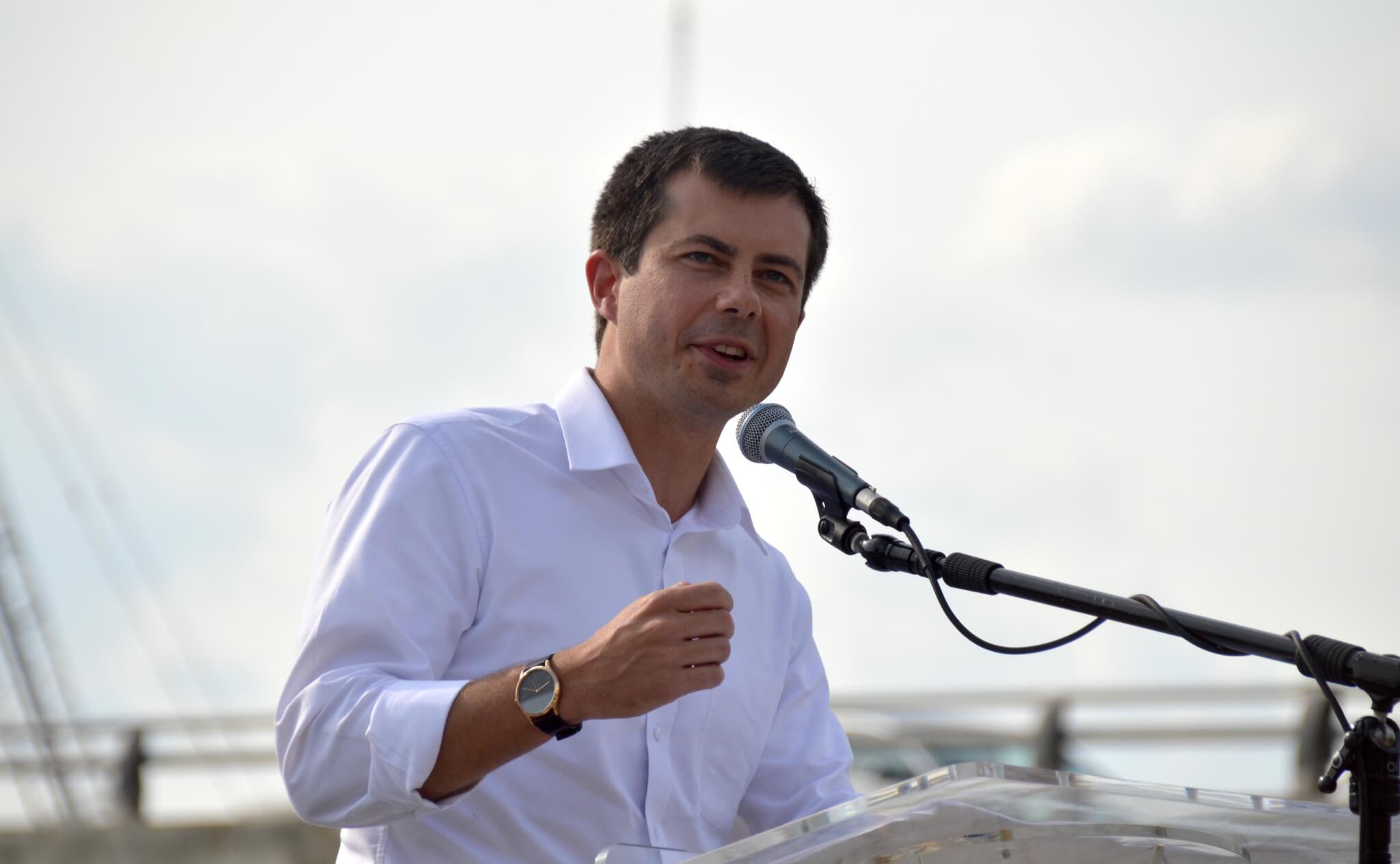 South Bend Mayor Pete Buttigieg addresses the crowd
