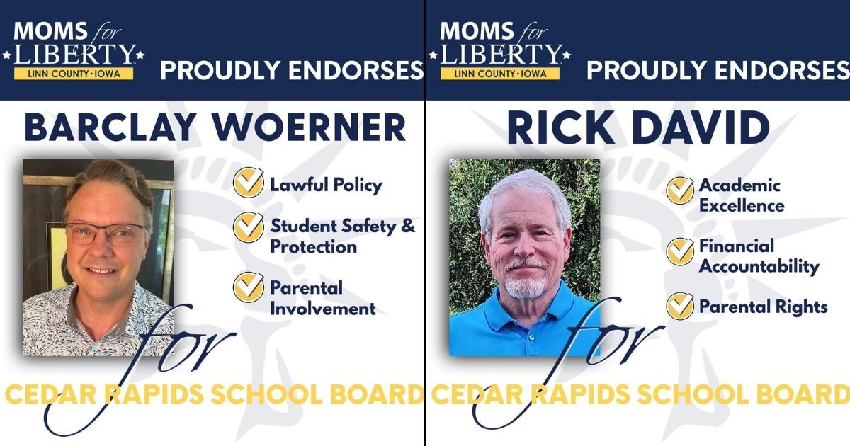 Why this race stands out: Because of the national hoopla surrounding Linn-Mar, the Linn County-Moms for Liberty is inserting its influence into other Linn County school board races, including Cedar Rapids. The chapter endorsed Rick David and Barclay Woerner.