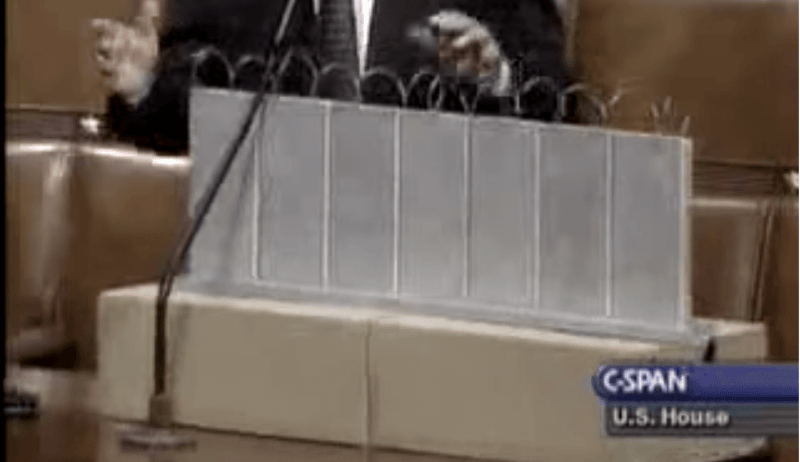 Attached to King’s newsletter was a video clip from July 2006 when he built “a border wall of his own design” on the House floor.