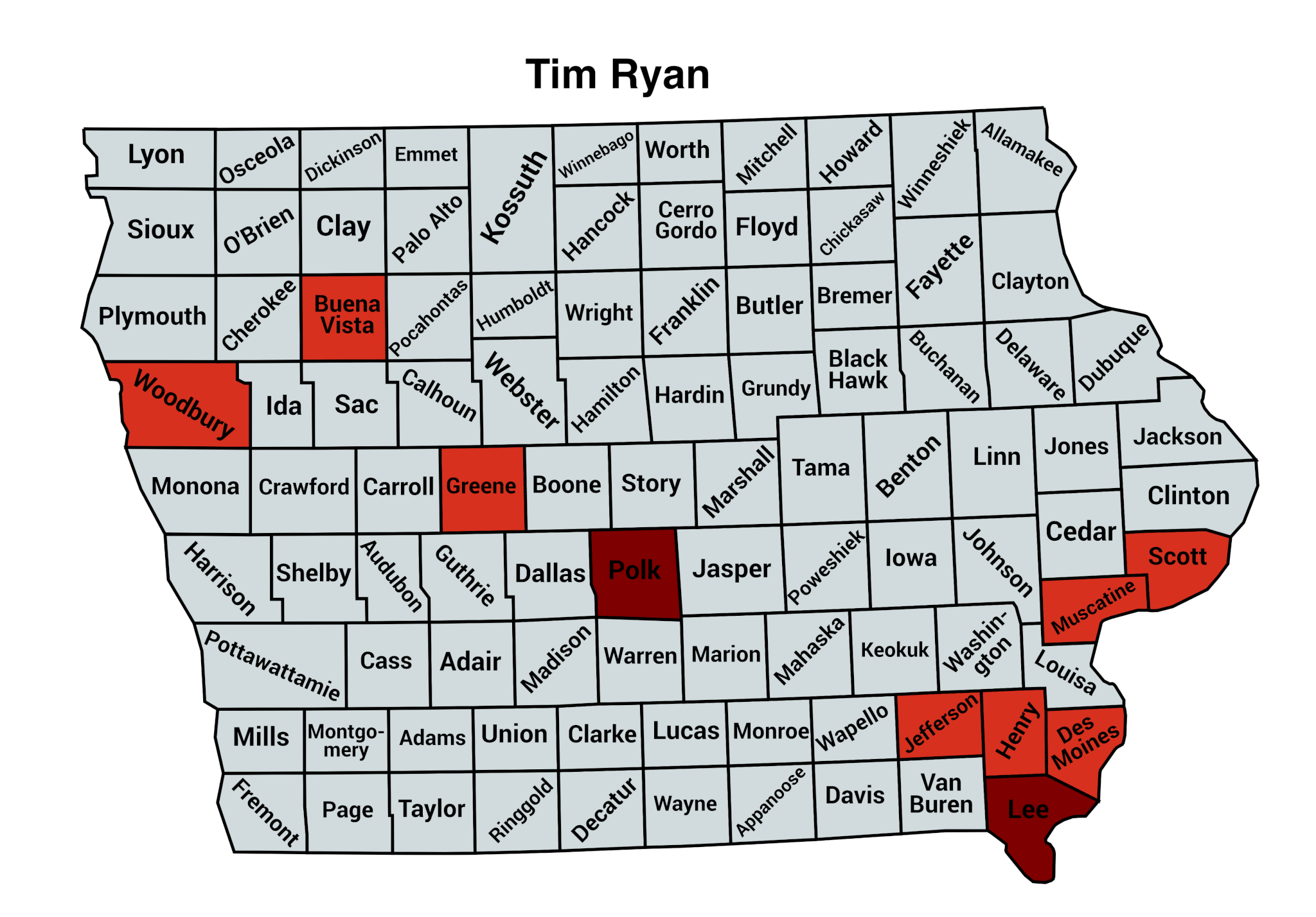 Even without staff on the ground, Ryan has started to make some headway into Iowa. One of his initial campaign swings focused on blue-collar counties in Southeast Iowa, the type he’s skilled at winning back home in Ohio. Ryan went there before some of the more traditional early stops like Ames, Iowa City, and Cedar Rapids.