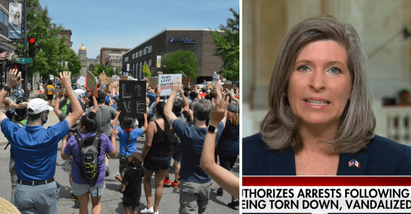 “Well, their demands, that’s very interesting, because we hear over and over again the calls to defund police,” Ernst replied. “That’s just a liberal talking point. It’s out there to be a very provocative statement, but it’s not solving the issues that we have in the United States today. Again, that’s done by peaceful dialogue and actually finding solutions, real solutions to these very, very hard questions.”