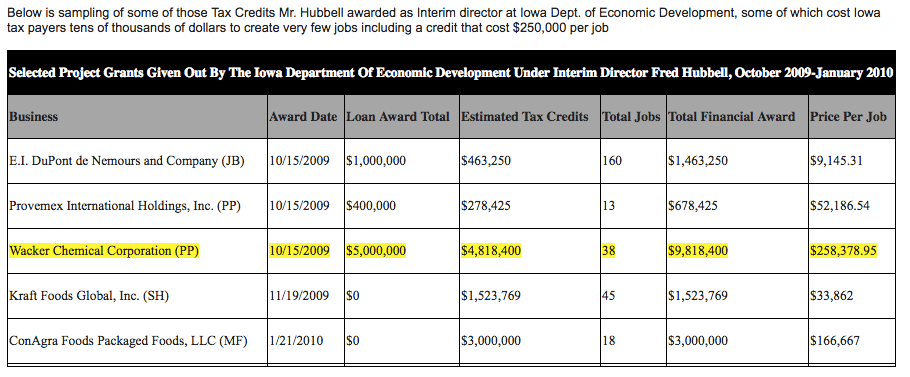 “I don’t know what he’s talking about,” Hubbell replied. “When I was in Economic Development, we had a film tax credit scandal that was costing Iowans tens of millions of dollars. We fixed that. We saved our state millions of dollars.”