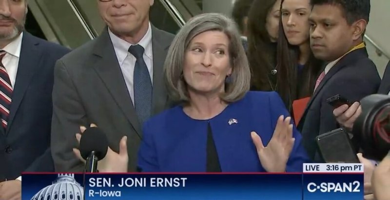 “Okay, Iowa caucuses, folks, Iowa caucuses, are this next Monday evening. And I’m really interested to see how this discussion today informs and influences the Iowa caucus voters,” Ernst said in a sarcastic manner at a Senate Republican press conference. “Those Democratic caucus-goers. Will they be supporting Vice President Biden at this point? Not so certain about that.”