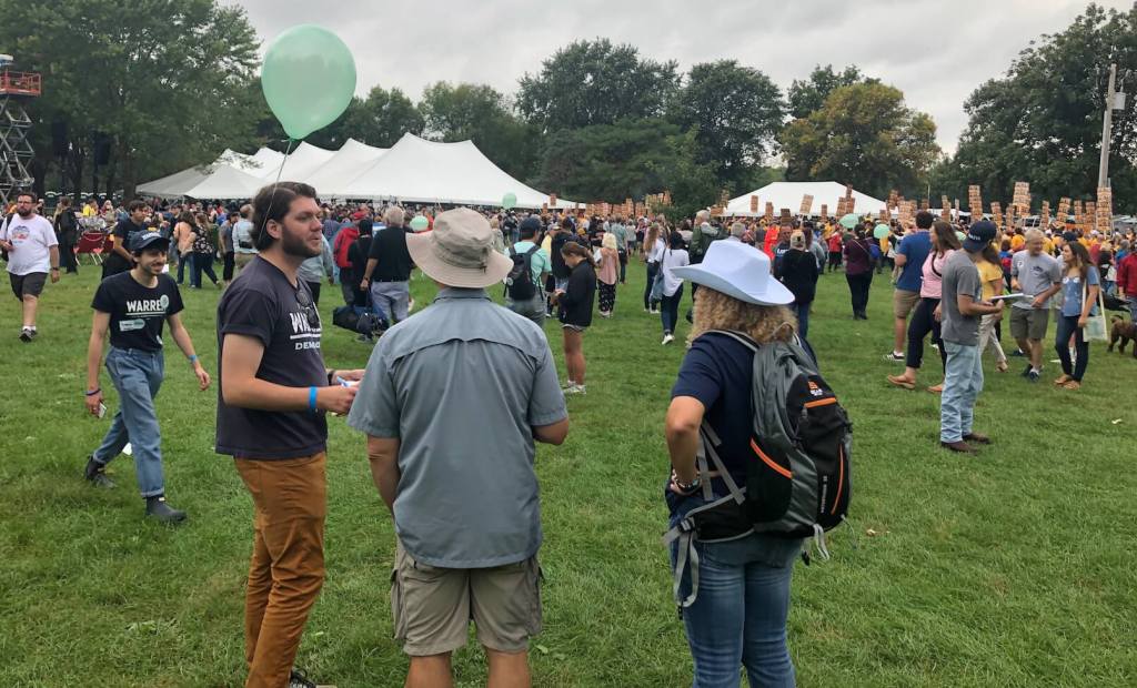 The Bernie Sanders’ campaign also chose not to participate in the day’s festivities, which is their usual approach to party events, instead sending volunteers out to door knock. That left Warren’s team as the only ones spending the entire time getting out and talking to voters at the event (other campaigns obviously talked with attendees, it was just Warren’s sole focus). Over 12,000 people attended.