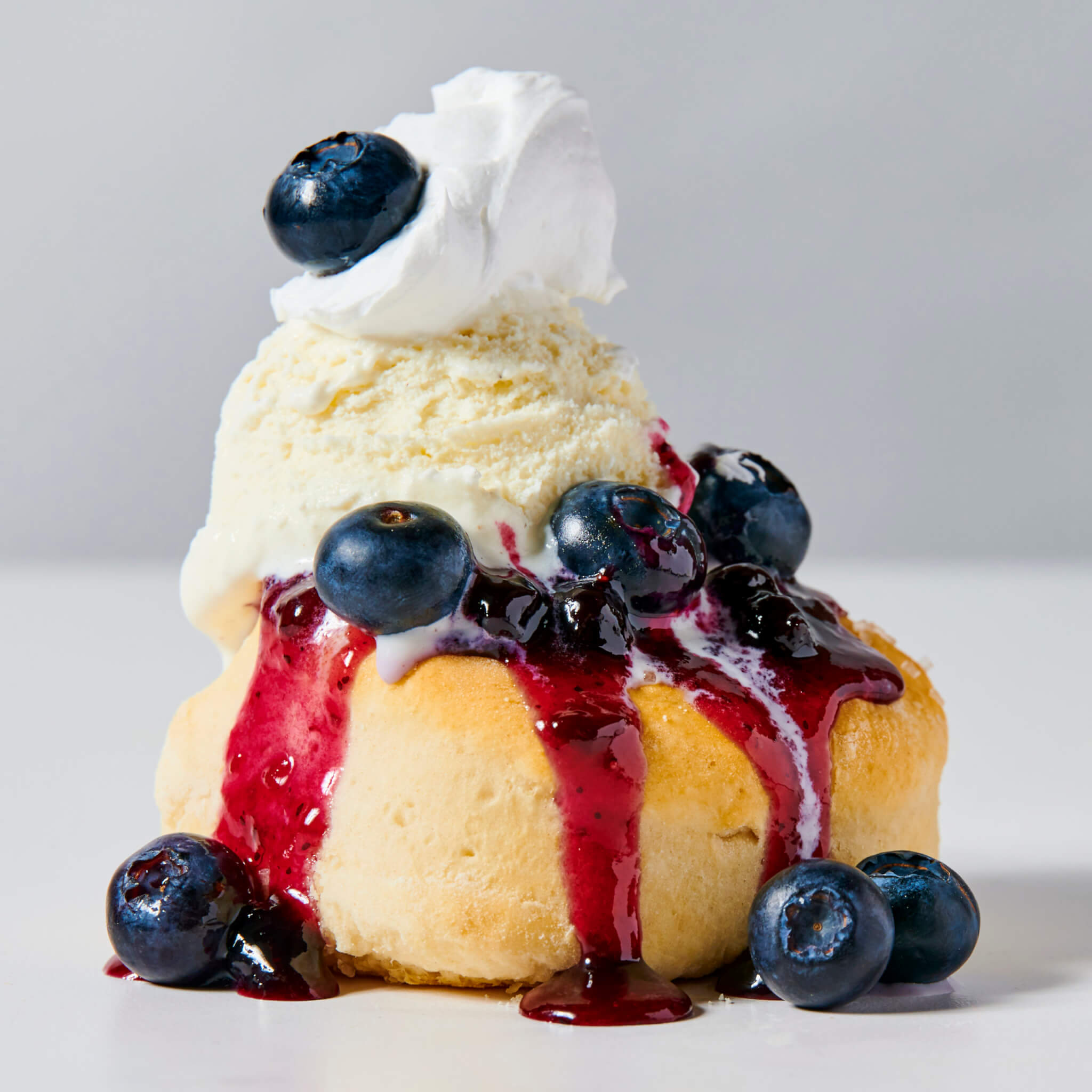 This cobbler looks like a cobbler shown on a home cooking magazine cover. Made-from-scratch biscuits sound great with ice cream, blueberries, and whipped cream, but this food is not unique enough to score a higher spot.