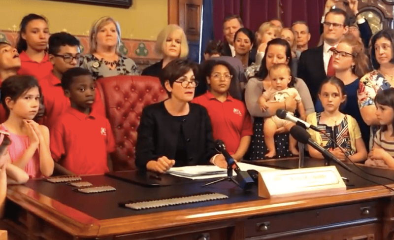 Iowa women are committed to defending their constitutional rights to reproductive health choices and will fight the Republicans’ backward legislation. During Governor Reynolds’ heartbeat signing, opponents chanted Iowa’s state motto, “Our liberties we prize, our rights we will maintain.”