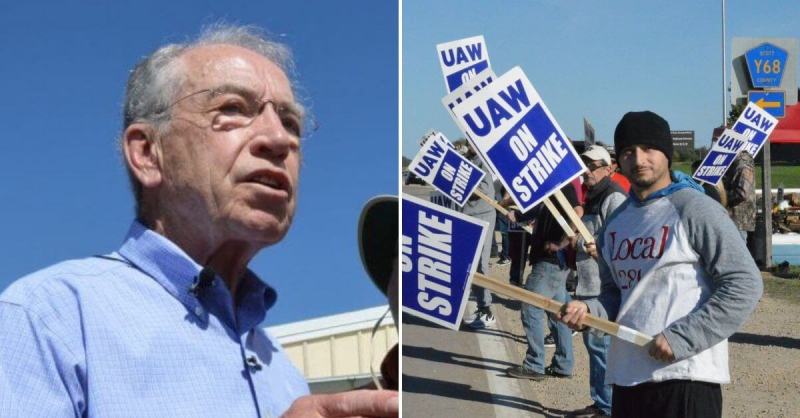 The committee is using the strike as a way to attack Democratic US Senate candidate Abby Finkenauer, who grew up in a union family, and to boost Grassley.