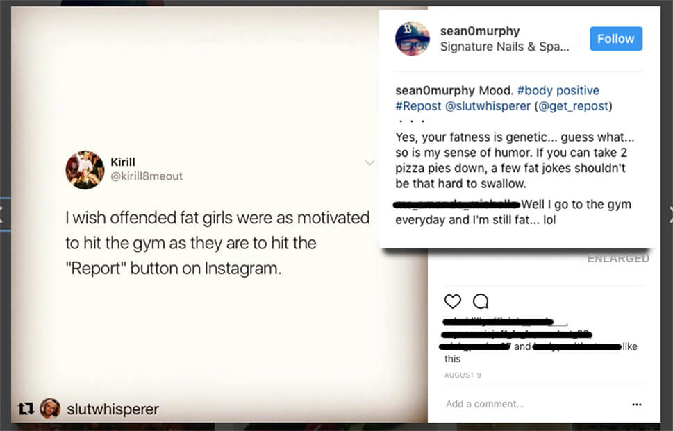 A different post by Murphy on Instagram talks about fat jokes aimed at women: