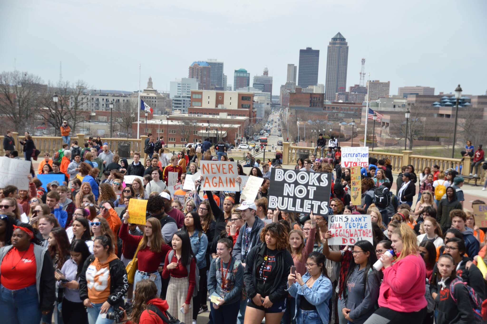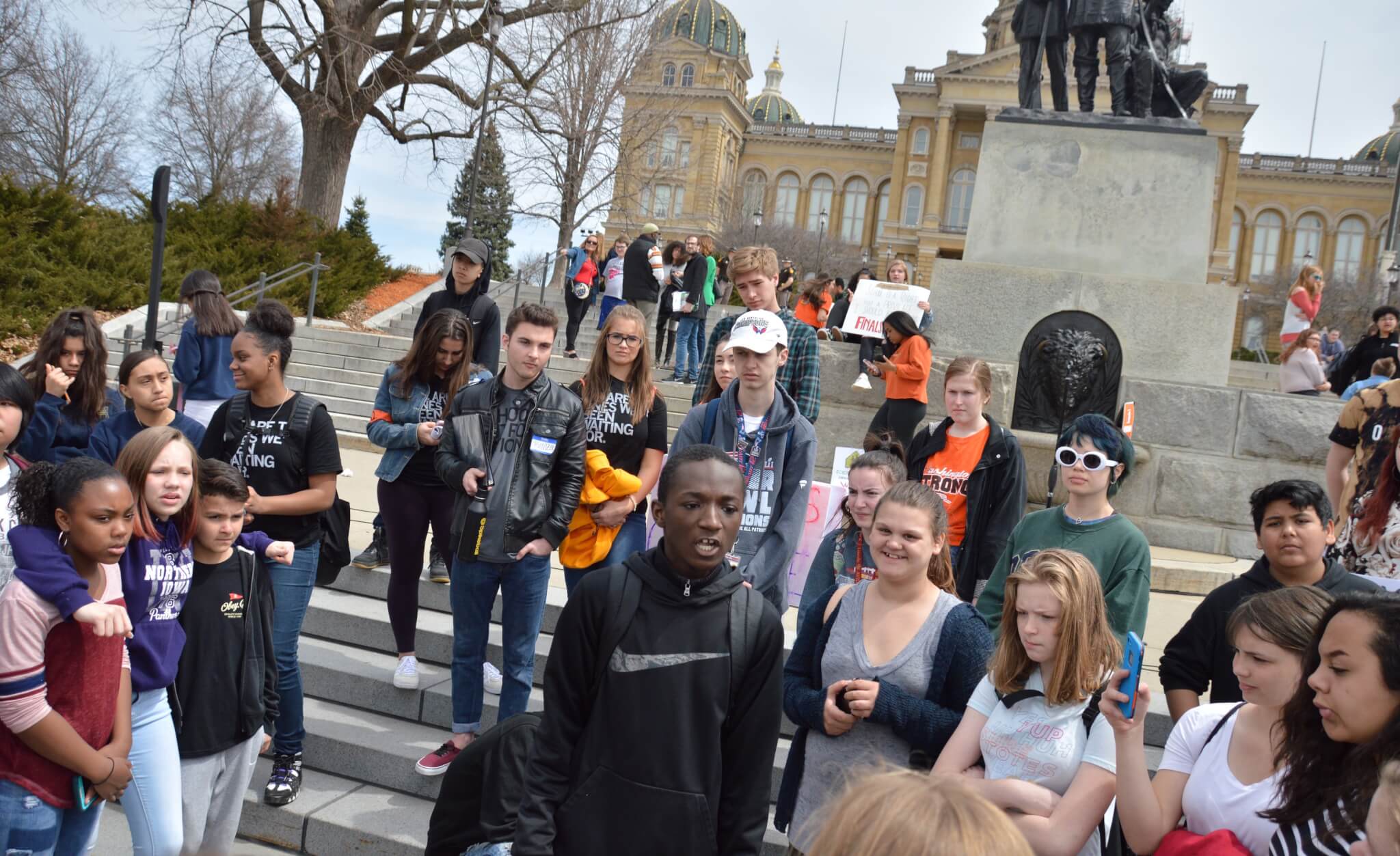 Several hundred middle and high school students from around Central Iowa gathered in front of the Capitol today to rally for stricter gun control measures. It was part of a nationwide walkout effort building upon the increased anti-gun violence activism since the Parkland school shooting.