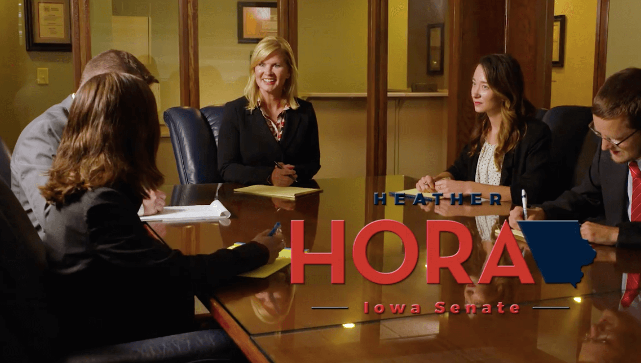 Kevin Kinney may be one of the toughest Democratic incumbents to oust this year, but Republicans are giving it a good try with farmer Heather Hora. Her ad focuses heavily on rural imagery and messaging, introducing herself as a “farm mom.” Like many of the Democratic House challenger candidates did in their ads, she suggests Des Moines needs fewer “career politicians.”